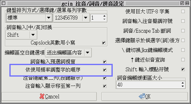 但是有一個問題,我想要讓打出來的第一個字,不要因為常輸入的關係,而選到其它候選字。
