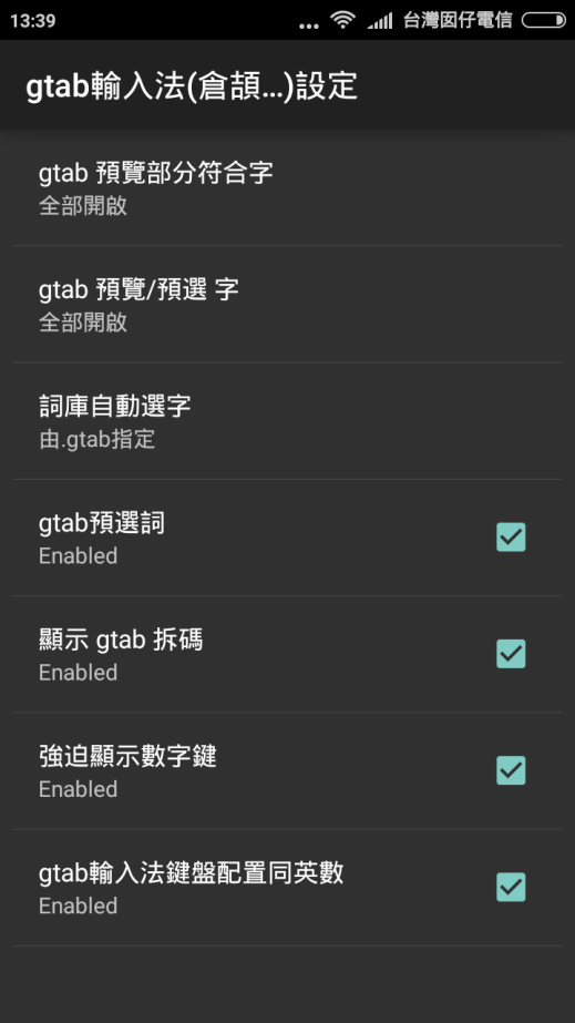 Android 6.0 以上請執行 gcin 的設定工具就可以更輕鬆完成 gcin 的相關設定。不要直接用設定的「語言與輸入」去開啟,這樣不僅麻煩,而且會一直看到 gcin 當掉的訊息,因為「上層繪製內容」的權限沒有開啟。 | ||||||||||||||