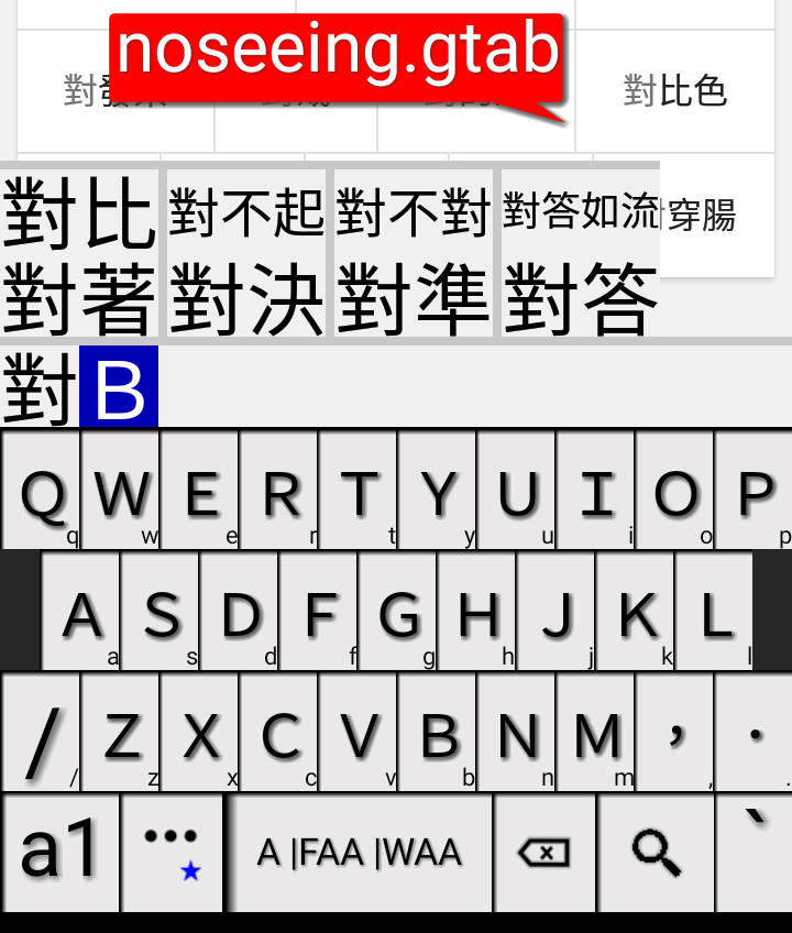 如果用 noseeing.gtab (無啥味、X蝦米),加入 noseeing.gtab 之後 gcin 工具→設定→gtab輸入法設定→gtab預覽/預選字→全部開啟 這樣才可以選擇字。 | ||||||||||||||
