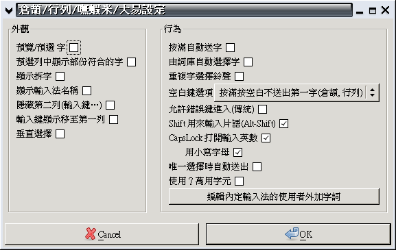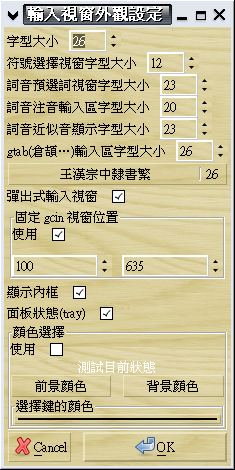在這次的測試中,我取消了gtab輸入法設定的兩個選項: