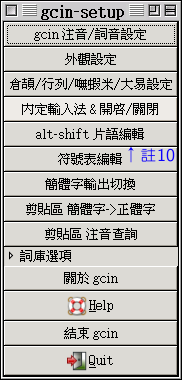 註11: gcin預設可以用{ctrl+某鍵}來輸出常用符號,如{ctrl+,}就輸出「,」,以此類推。
