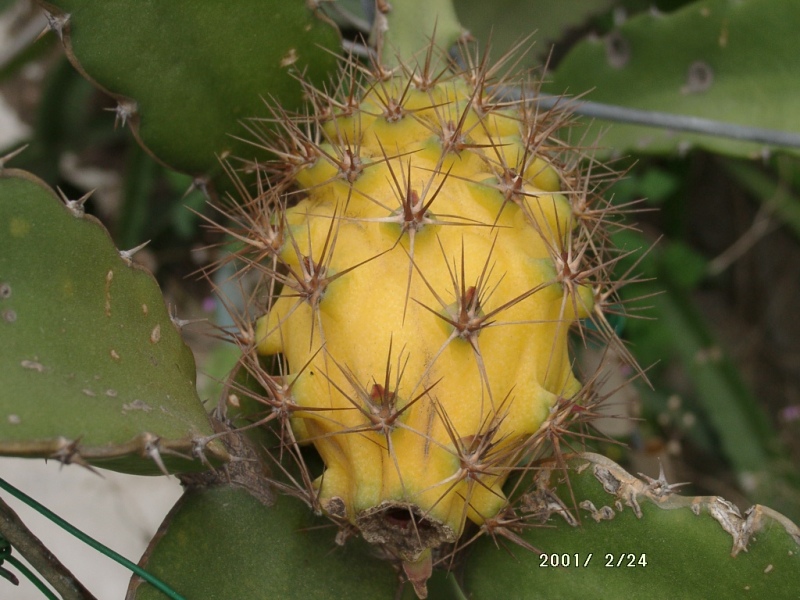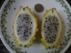 有一種黃皮白肉的黃龍果 Selenicereus megalanthus,幾年前以色列的農場種植的每顆黃龍果售價高達美金5元,味道清甜,還不錯,但我覺得 5元實在太貴了。黃龍果的花很大,直徑可以到 30cm,可以自花授粉。黃龍果未成熟的果實是綠色的還有刺,等成熟了以後,就變黃色,刺也可以刷下來。