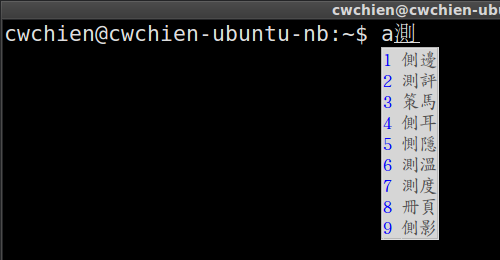P.S 我的 libvte9 是來自 Ubuntu 官方套件庫,不確定有沒有加上輸入法 patch