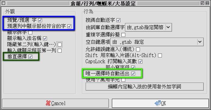 增加一個.cin檔的功能選項–定義「自動選字時,按space不送出緩衝區」