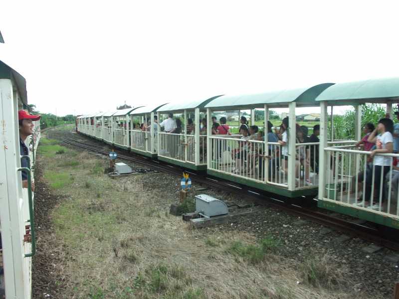 火車是運送甘蔗的車廂改裝成的,聲音很大,速度很慢。五分車是說軌道是標準軌道寬度的 50%。