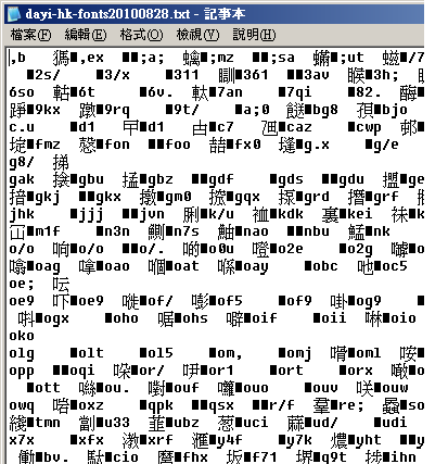 承蒙Winlin兄指導,製成 gdayi3-hkfonts.cin 和轉成gdayi3-hkfonts.gtab,有興趣使用的朋友可隨意使用。