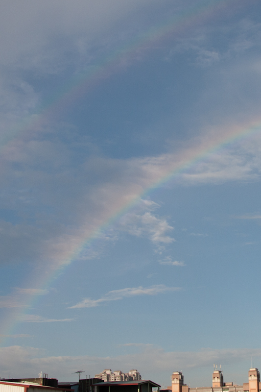 今天早上看到彩虹,而且外圍還有一圈霓,非常難得。
