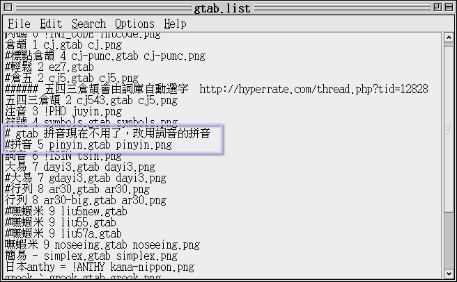 打開/usr/share/gcin/table/gtab.list ,可以看到下面這句話: