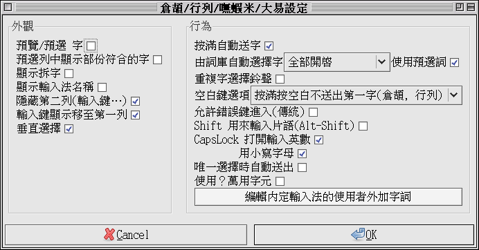 還是不行。沒有跑出預選字提示。也許只有倉頡可以?因為我是用蝦米的... | |||||||||||||