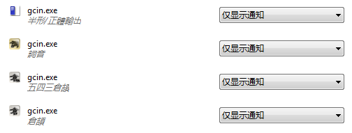 有可能 win7 的 icon 顯示管理員無法偵測 gcin 已經移除。