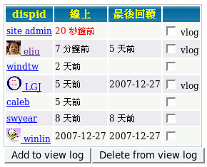 每個目錄現在都有一個聊天室。 使用者可以設定聊天室畫面的顯示的列數,此設定是存在 browser 瀏覽器的 cookie,是用戶端可以設定的。在比較慢的 CPU,過多的顯示列數會導致在有新的訊息要顯示時,瀏覽器產生停頓的感覺,甚至造成瀏覽器掛掉,特別是 Javascript 較慢的 Firefox。 目錄的版主可以設定儲存的列數,上限是 10000 列。 旁邊的只有vlog使用者可以看以前的訊息,目的是沒有 vlog 的人只能看到以前5列聊天訊息,以免看到之前某些不便公開的話題,只能看到加入聊天室後的內容。只有目錄的版主可以清除/設定 vlog。