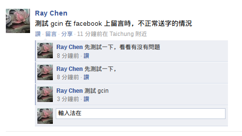 測試(enter)(ctrl-space)(space)gcin(space)(crtl-space)輸入法在(enter)