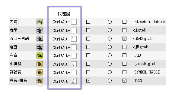 另外,不知道有沒有辦法直接在gcin設定中指定快速鍵?(例如:變成文字欄位,讓使用者自填?)