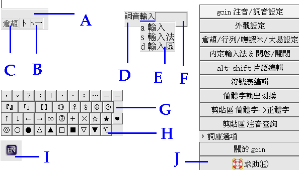 不過我無法由看原始碼來了解gcin的各個部份叫作什麼