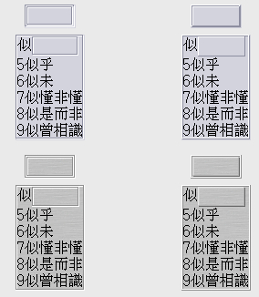 所以只要針對gtk佈景主題作某些修改,就可以讓gtab輸入法的拆碼區像詞音輸入法一樣漂亮!以下是一個demo。