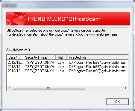 TrendMicro OfficeScan 判斷 gcin-inst.exe 有木馬