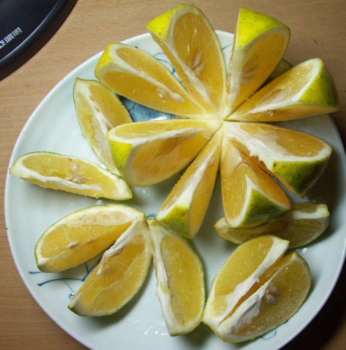 今天在市場有看到綠皮葡萄柚,甜不甜就不知道。我上一次吃到的是黃綠色的皮,懷疑這麼綠的可能會不夠熟。就像那個綠皮柳丁,甜度就是不如黃皮的。