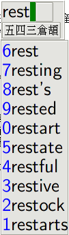 (3)在英文狀態下按rest,這時會出現候選字清單,隨便按個數字選個單字(例如:resting)