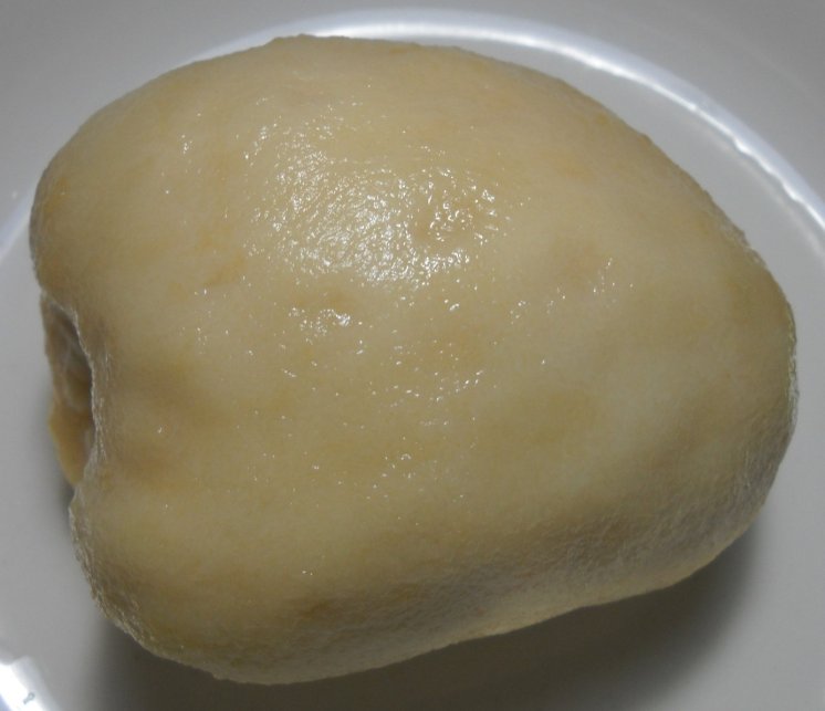 如果要選比較甜的鳳梨釋迦,要選比較黃的,不過有些人可能會覺得鳳梨釋迦太甜,那就不要選黃的。 鳳梨釋迦必須放到軟熟才能吃。在水果店可以買軟熟的鳳梨釋迦,會比較實惠,因為水已經蒸發,重量會比較輕,這樣也幫老闆分擔賣不出去的壓力。軟熟的鳳梨釋迦可以放在冰箱冷藏保存。 選擇軟的鳳梨釋迦要注意蒂頭的部位有沒有變黑的部位,那是爛掉的部位,不可以變黑一大圈。自己放在家裡也一樣要注意蒂頭部位。 我們家是用鐵湯匙把軟熟的鳳梨釋迦去皮,必須刮到感覺沒有粗粗顆粒的殘留,否則會有皮的怪味。然後水洗一下,就可以切片來吃。如果皮有點難刮,通常這是鳳梨釋迦不夠軟熟,味道也比較不好。 這樣吃就不用擔心咬到皮,是不是比較過癮?也可以把鳳梨釋迦肉拿去冷凍當冰淇淋吃,據說味道不錯,我是還沒試過。 如果是一般的釋迦則建議用刀切開成兩半,然後用鐵湯匙挖肉出來吃。 |