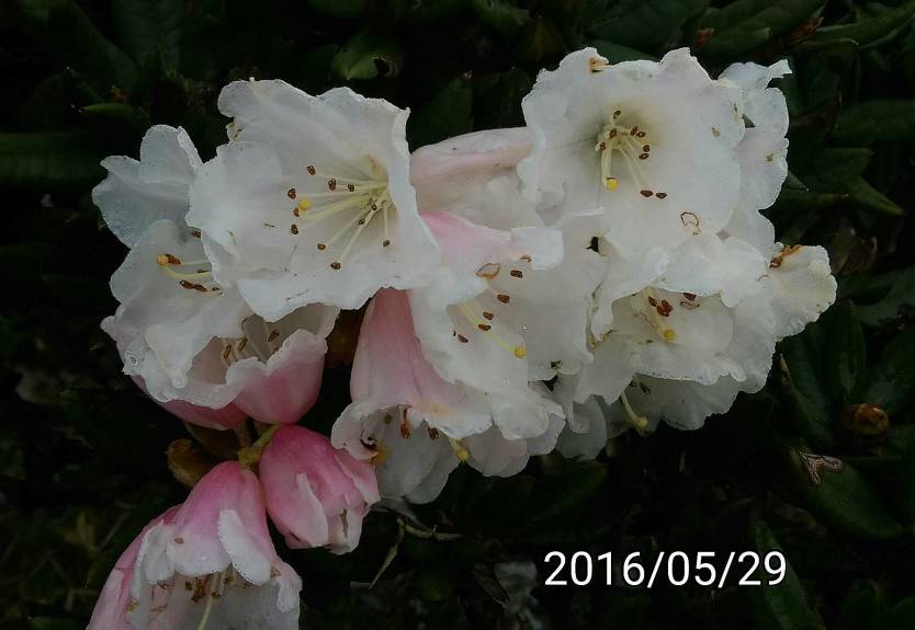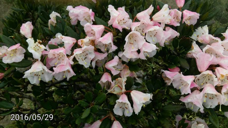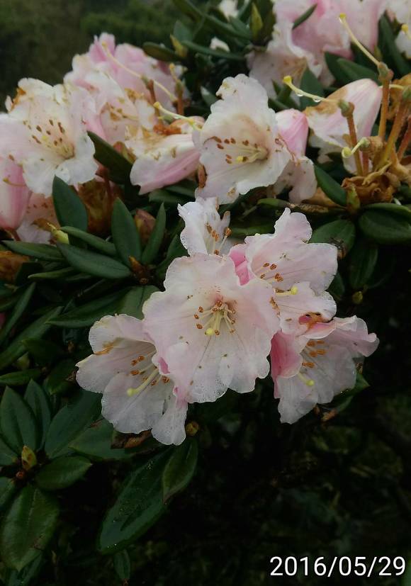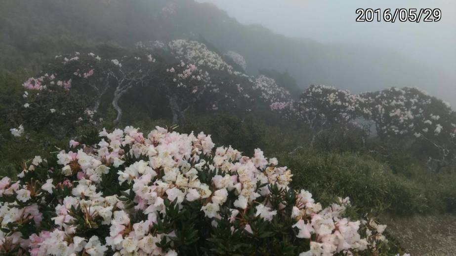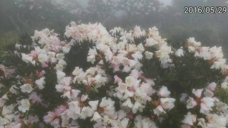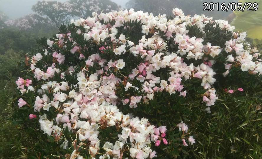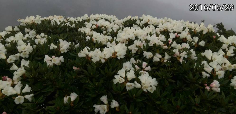 今天去合歡東峰拍的玉山杜鵑 Rhododendron pseudochrysanthum of Hehuan Mountain。可以看到即使都在合歡東峰,玉山杜鵑有粉紅色&白色兩種。色彩濃度符合現場。一般合歡山的玉山杜鵑花季是 4月下旬到5月中旬。今年因為氣候不正常,有很強的寒流所以都快5月結束還有很多花。合歡東峰可能比較冷,所以玉山杜鵑花開得比較晚。最早開花的是石門山,花季也比較早結束。