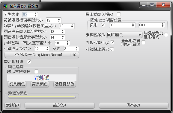 2014/04/25 09:39 後來發現,有些佈景主題會使gcin視窗無法顯示 問題已經解決了! 感謝大大製作這麼好的輸入法!! ---------------------------------------- 2014/04/25 08:00 在設定完「外觀設定」->「編輯區顯示」->「gcin顯示 (over the spot)」或「同時顯示」之後 Win7無法顯示「gcin視窗」 設定我放在附件中