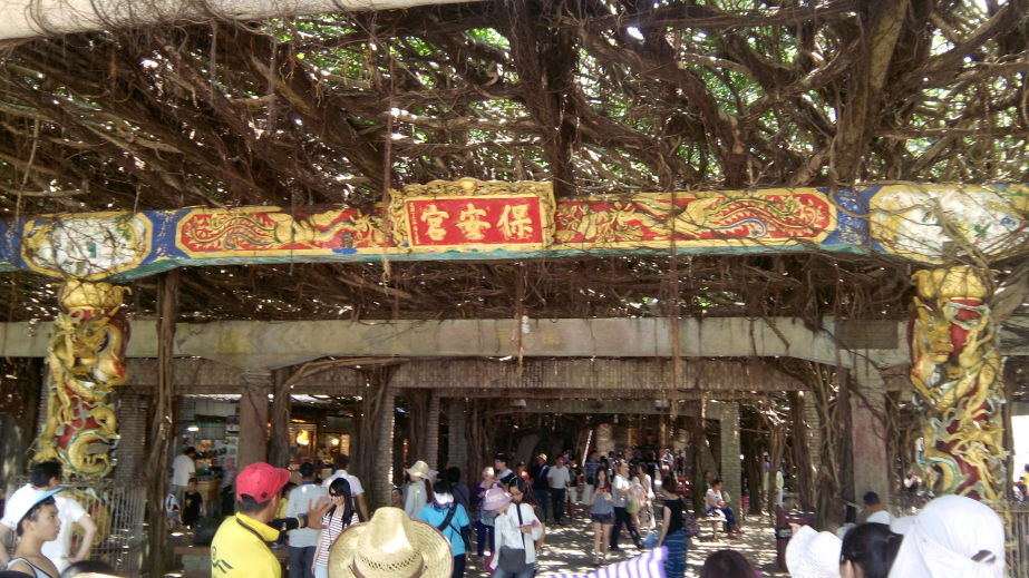 有沒有看到底下的廟前廣場那一根大水管,裏面有裝泥土,引導榕樹的氣根生長。等到樹根長到夠大,就把水管拆掉。 | |||||||||||