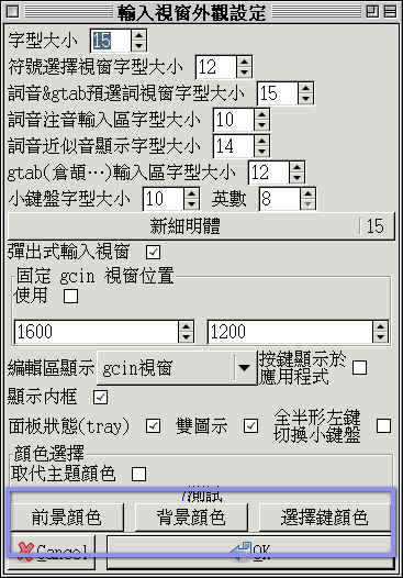 您也可以在gcin設定裡作些微調,稍改變gcin的版面和字型: