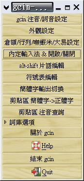更換gcin佈景的原理很單純,只是在gcin執行之前先為gcin指定使用特定一個gtk+佈景而已,
