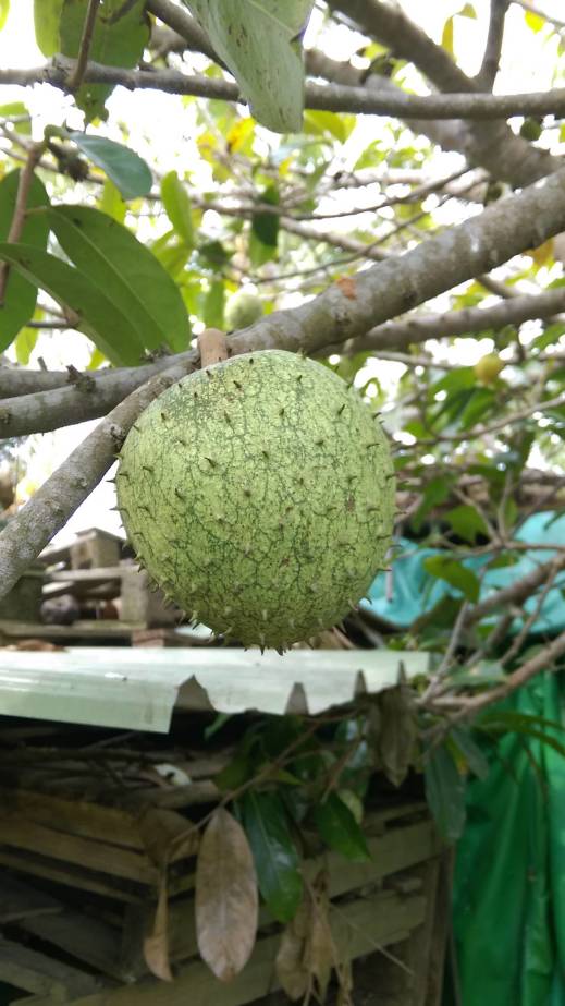 據說有抗癌的效果,可食用的水果,但不是大眾化的口味。與鳳梨釋迦是同一屬的植物。鳳梨釋迦是冷子番荔枝與普通番荔枝(釋迦)雜交而成。有沒有覺得山刺番荔枝果實的花紋與鳳梨釋迦的很像,不過鳳梨釋迦的是凹凸不平的。