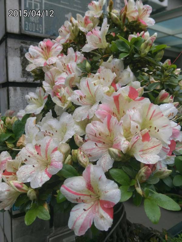 猜測可能是紅花&白花雜交出來的的 雙色條紋杜鵑花