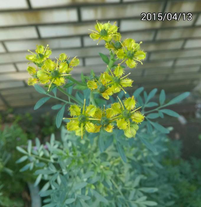 特徵:黃色的花,十字形狀的花瓣(有毛邊)&十字形狀的雄蕊中文名稱:芸香, 臭芙蓉, 臭草, 心臟草英文名稱:rue, common rue or herb-of-grace學名:Ruta graveolens原產地:南歐巴爾幹半島