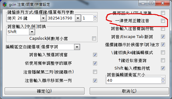 gcin Windows 在注音新增「一律使用正體注音」,內定是開啟。