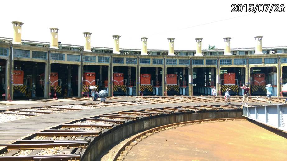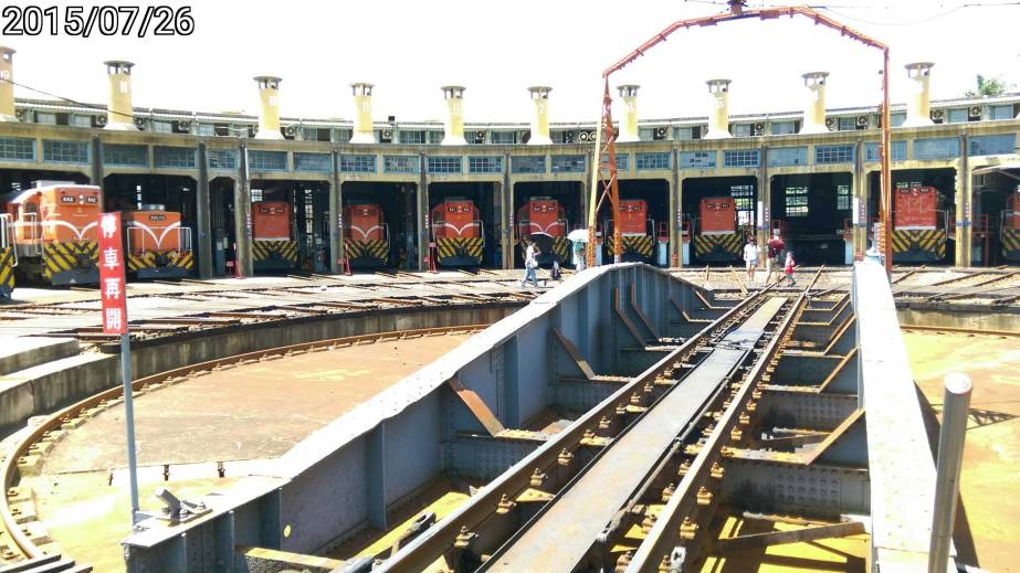 彰化扇形車庫是用旋轉軌道移出火車頭。
