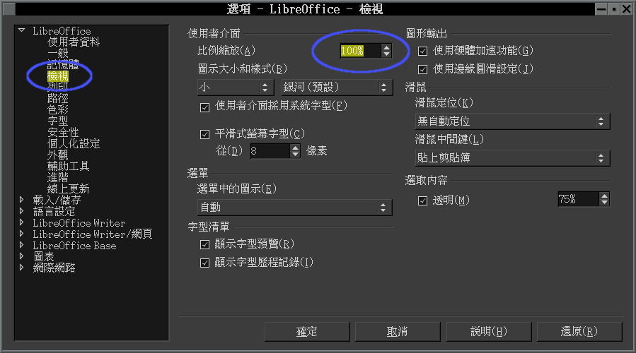 但是我猜測調整下面這個設定值應該可以把Writer的字型大小設到和其他應用程式相近: