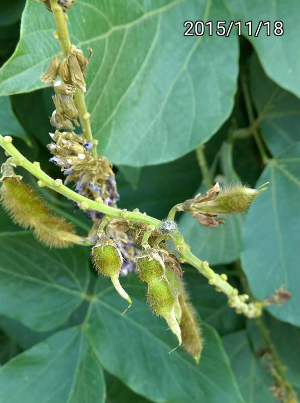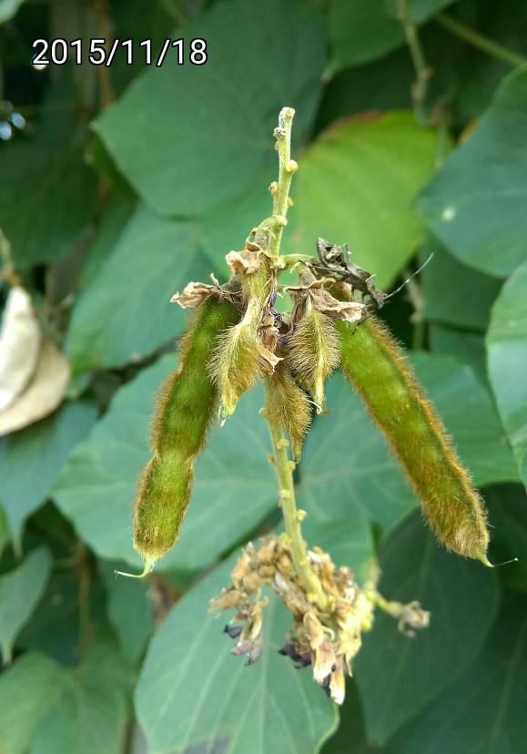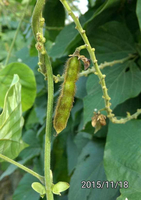 葛藤結豆莢的比例其實不高,外觀像黃豆,毛比黃豆的果實(毛豆)更長。