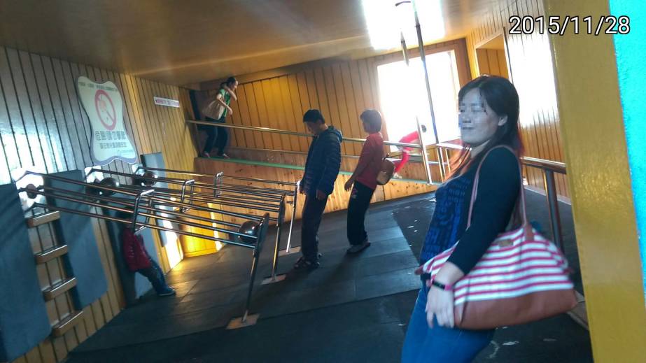 使用 HTC Desire Eye + AndCamera 拍攝/打上日期&文字/銳利化/馬賽克/裁剪 站在一個平台上,會依使用者的重量噴出不同高度的水柱。別誤會,我的體重沒有到100kg,因為這個水柱秤很不準。如果兩個人站或是體重超過90kg,有一個秤的水柱會噴向人懲罰,會導致衣服弄溼。有一個同行的親友被噴到。 這是小叮噹科學主題樂園 我覺得最特別的一個設施,房屋是欺傾斜的,地板也是傾斜,造成視覺&半規管平衡感官的不一致,會有暈眩的效果。可是對小孩的影響力就比較小,可能是小孩的視覺&半規管的平衡訓練還不夠久。 那個搖擺噴泉的開關好像是要拿起來摩擦的樣子。有一個小朋友試了很久。 十幾年前來的時候覺得很像天上水。這次來,不僅水量變小,裏面的水管也變黃了,很不像。需要修理調整 這個龍骨水車效率很差,要踩很快水才會上來。 使用 HTC Desire Eye + AndCamera 拍攝/打上日期&文字/銳利化/馬賽克/裁剪 小叮噹科學主題樂園 開放時間:8:30AM 5:00pm 票價