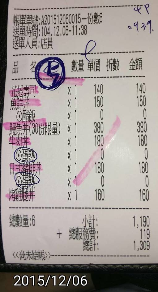 因為不喜歡吃生魚片,今天點魚鮮會社$220+10%的豚燒肉丼,沒什麼料,豬肉一堆軟骨,水煮蛋是冰的。cp值很低。不如吃$150的吉野家套餐。 edited: 2