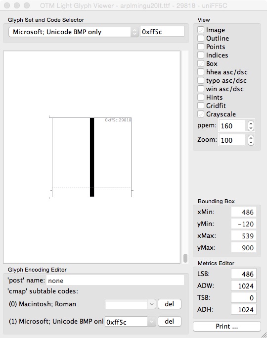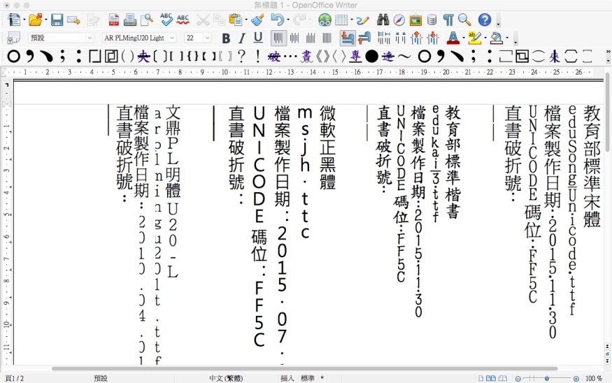 畢竟我的範例是 unicode 的AR PLMingU20 Light 。