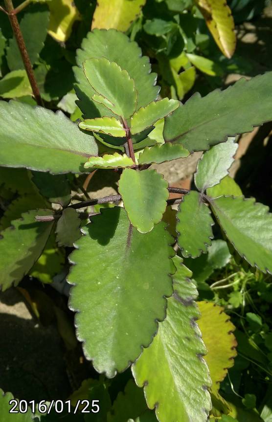 葉片邊緣的波浪狀埋在土裡可以長出新的一棵,因此稱為落地生根