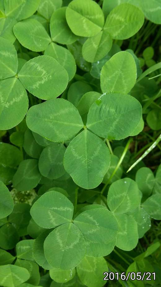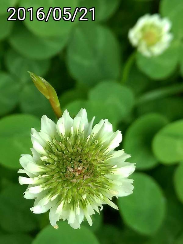 特徵:類似酢漿草的三角排列的三片葉,三片葉中心有三角形的白斑,花是白色中文名稱:白三葉草學名:Trifolium repens英文名稱:white clover原產地:歐洲&亞洲