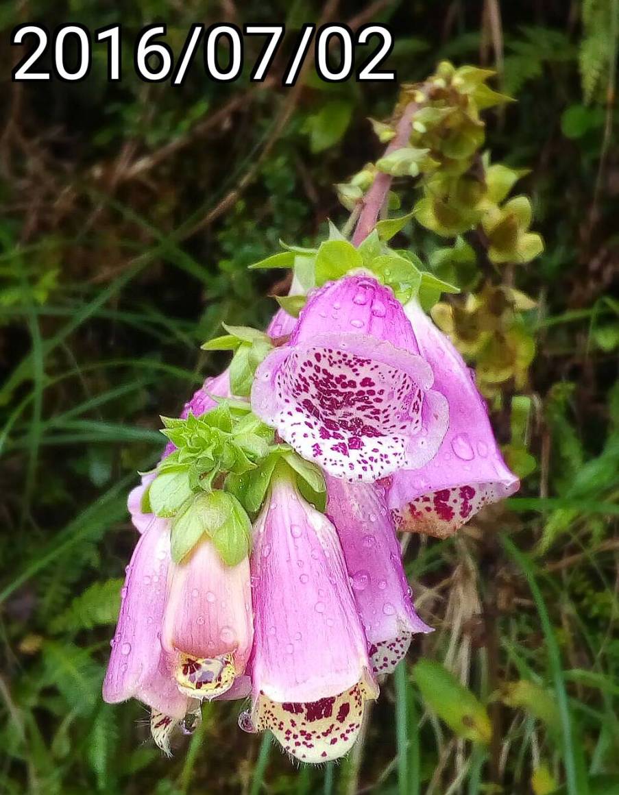 從宜蘭太平山的停車場到步道的馬路邊的斜坡很多毛地黃、Digitalis purpurea, foxglove。