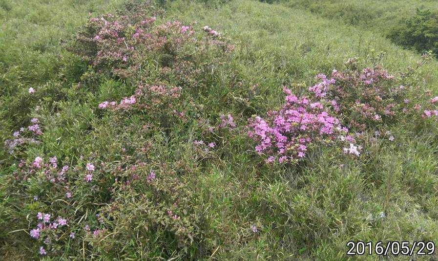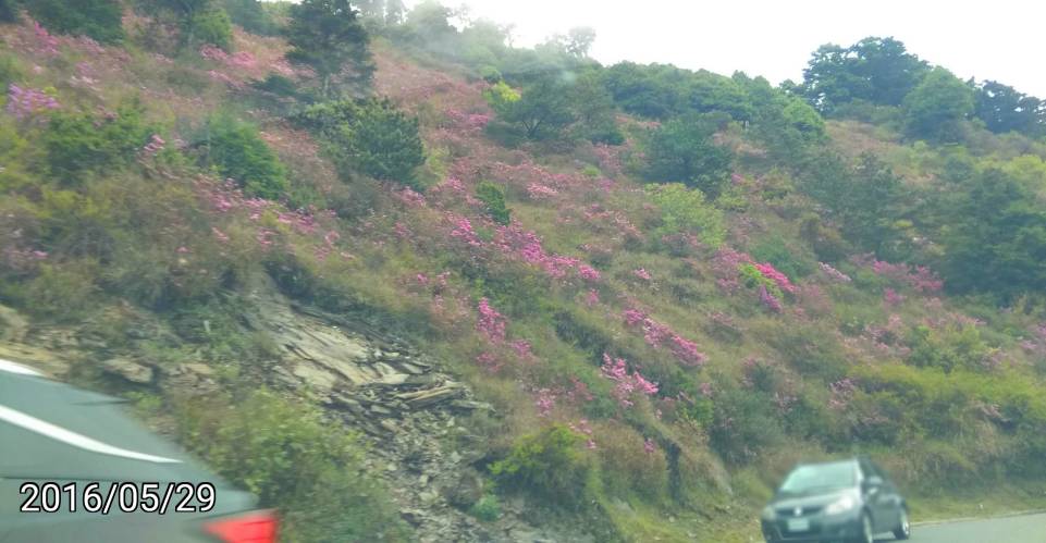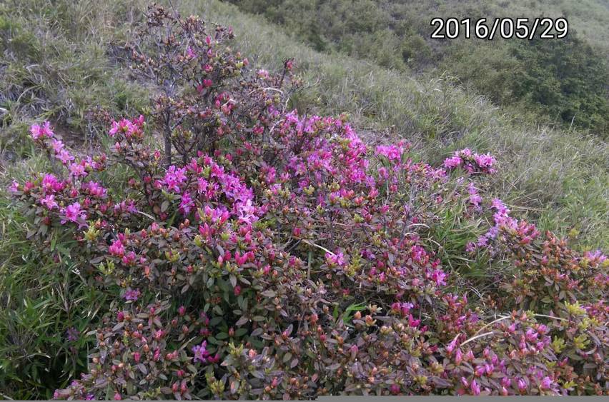 從鳶峰到合歡山路邊的山坡,隨處可見紅毛杜鵑
