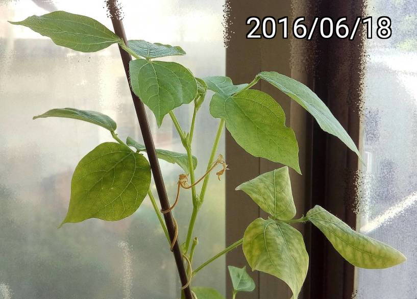 用那種培養土種花、植物很容易變黃,葉子不綠。可能是培養土太酸,或是培養土缺少鎂。鎂是葉綠素中必須的礦物質,酸性的環境中葉綠素中的鎂容易流失。所以有人在煮菜時加入小蘇打,這樣菜就比較不會變黃,用小蘇打中和酸性。培養土主要的成份似乎是腐爛的木屑? 女兒抱怨用培養土種的紅豆的葉子變黃,我就用氧化鎂(MgO),真的有效,可以觀察到後來的葉子就變成深綠色了。用硫酸鎂(瀉鹽, MgSO4)似乎也可以,不過要調整培養土的酸鹼值,用鹼性的氧化鎂會更好,在培養土的表面撒上氧化鎂薄薄的一層,不要過量。可以看到,紅豆後面長的葉子就愈來愈綠了。 使用 acer liquid Z630 + AndCamera 拍攝/打上日期/裁剪/背景模糊/銳利化 |