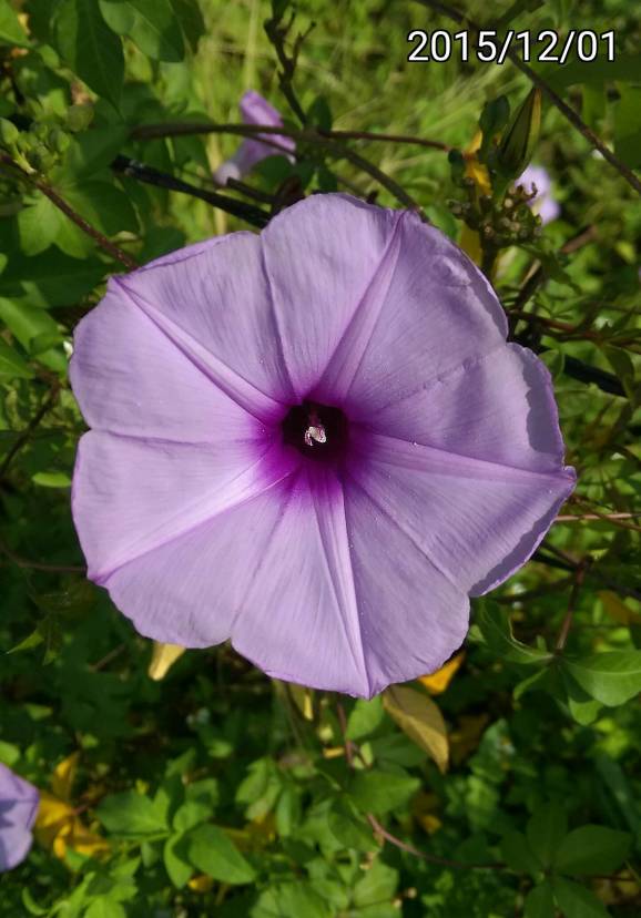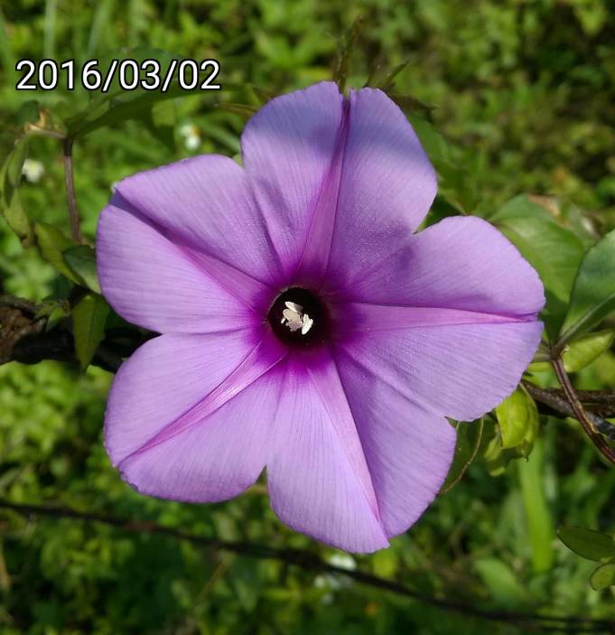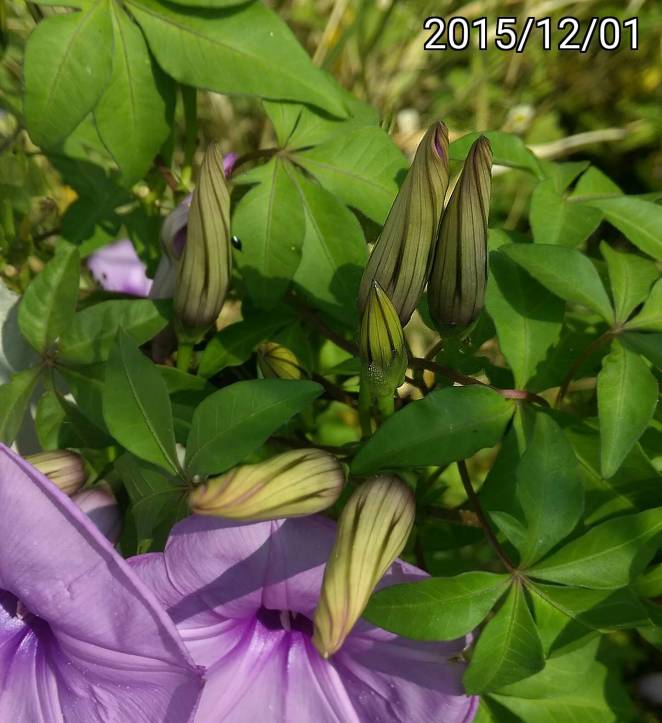 中文名稱:槭葉牽牛花、掌葉牽牛、五爪金龍 學名: Ipomoea cairica、Convolvulus cairicus 與牽牛花 Ipomoea nil 的藤蔓&葉差很多。小學同學喜歡把鑽到掌葉牽牛採花蜜的蜜蜂用花瓣封起來,然後帶到教室去惡作劇。這種牽牛花沒看過結果實,不知道為什麼開花。 使用 HTC Desire Eye + AndCamera 拍攝/打上日期/銳利化/裁剪 | |||||||||||||