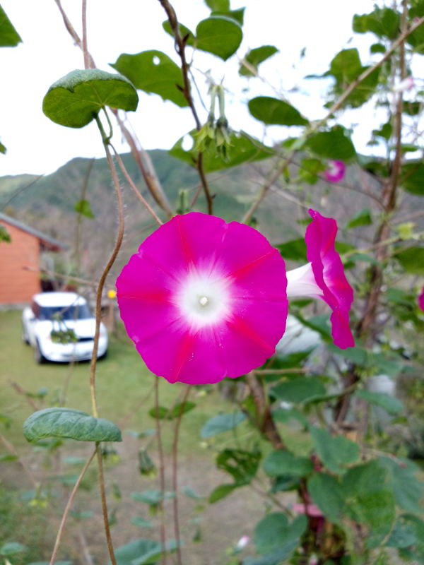 牽牛花我們稱做牽牛花的植物其實有兩種差異很大的植物,雖然歸類為同一屬的植物。 學名:Ipomoea nil 牽牛花的種子有毒,據說有人用來當迷幻藥。 使用 Acer liquid X1 + AndCamera 拍攝