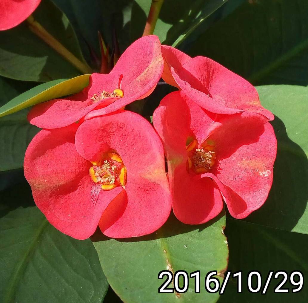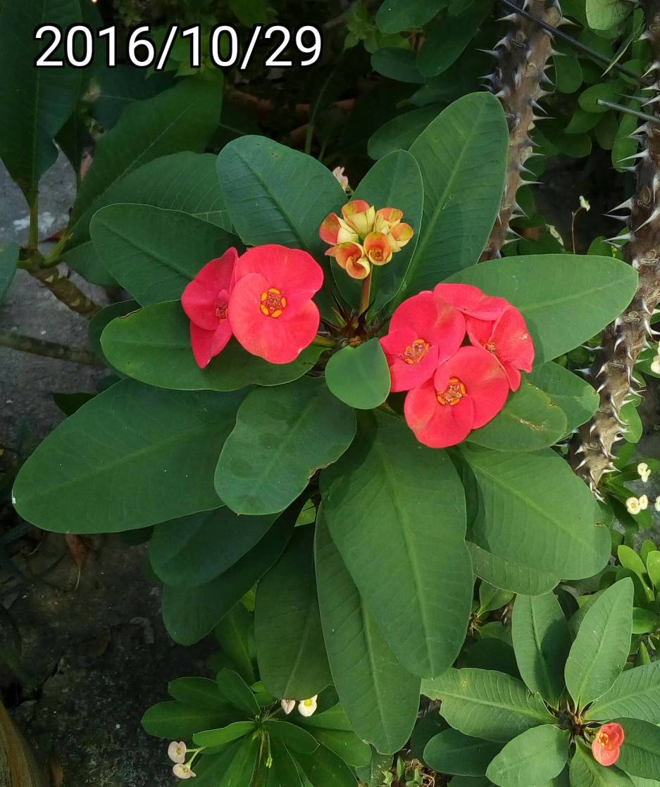 全紅的大麒麟花, Euphorbia milii var splendens, large crown of thorns, Christ plant, Christ thorn | |||||||||||||