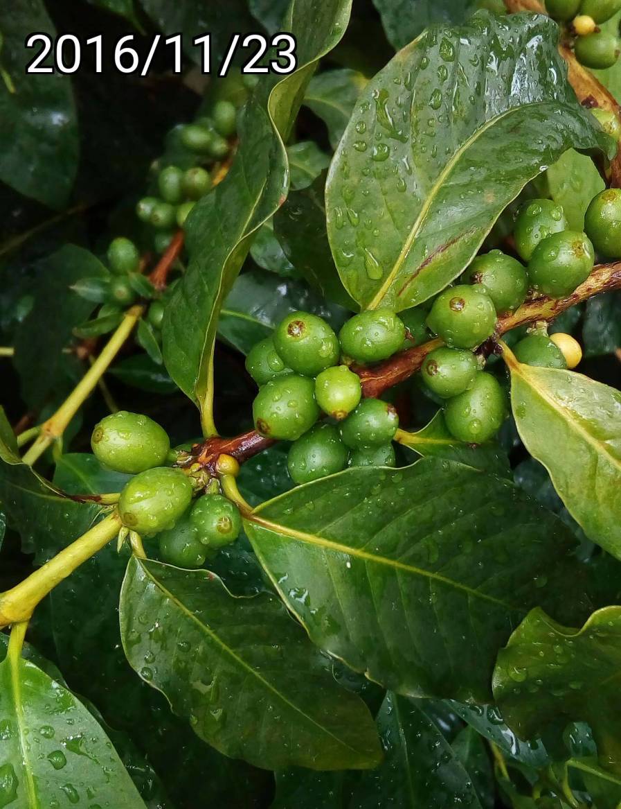 特徵:紅色的果實 我們喝的咖啡就是把紅色的果皮&果肉去掉,裏面的種子烘烤而成。 目前全世界 70-80%栽培的品種是arabica 阿拉比卡, 20-30%是 Robusta. Robusta 產量較高,容易栽培,但是苦味較重,咖啡因較多,所以目前的主流是 arabica 阿拉比卡. 當然,也有混合 arabica & robusta 的咖啡。 使用 acer liquid Z630 + AndCamera 拍攝/打上日期/裁剪/銳利化 |