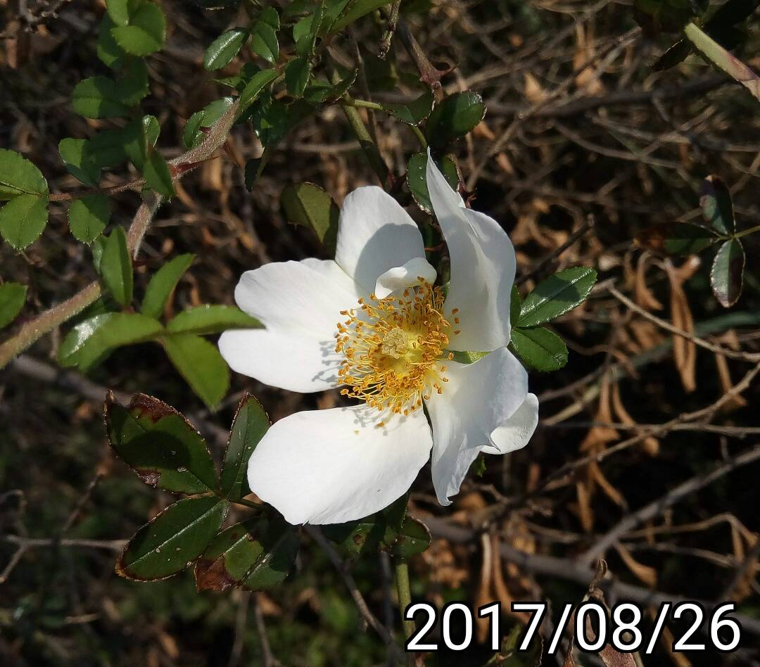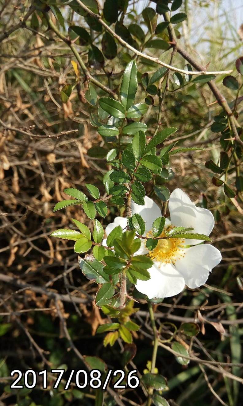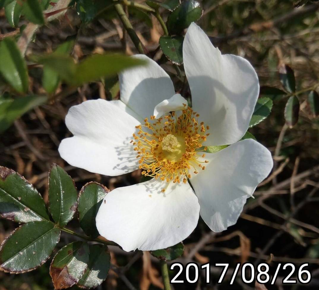 特徵:白色的花,薔薇玫瑰的葉子