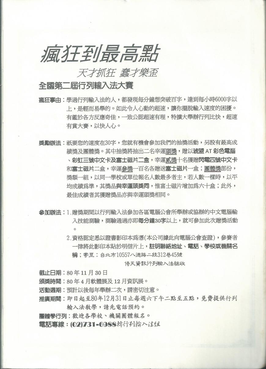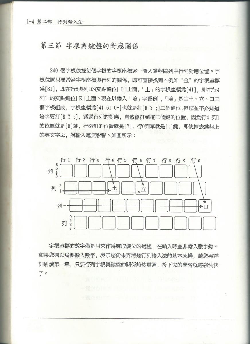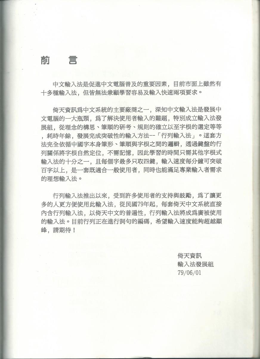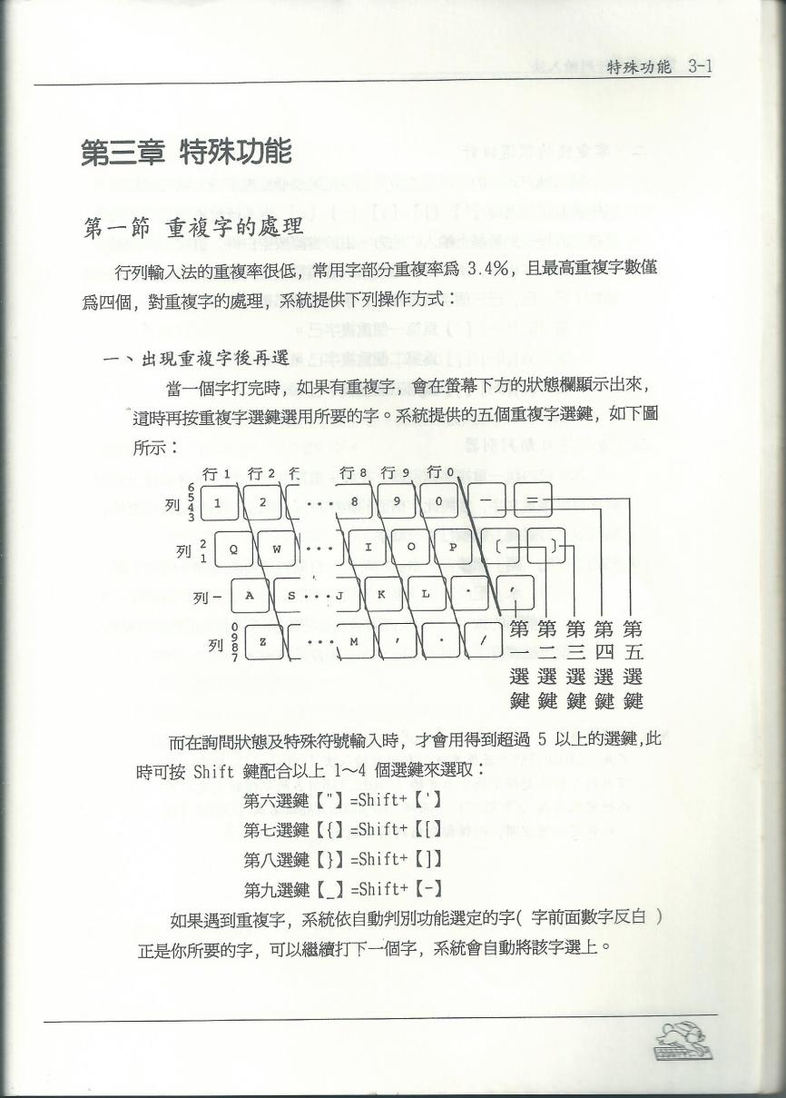 當年行列輸入法推廣時,時機上有點晚,中文打字市場已經有其它的輸入法可選用,再加上它撰寫於「倚天中文系統使用手册」民國79年以後的版本内,坊間相關電腦書籍就不方便推廣介紹,所以行列輸入法使用的人口非常少! | |||||||||||