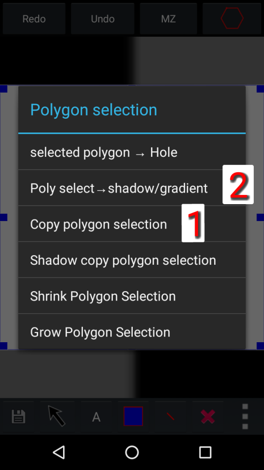 - While the filled polygon is selected, tap the second-level menu→Polygon selection→Copy polygon selection